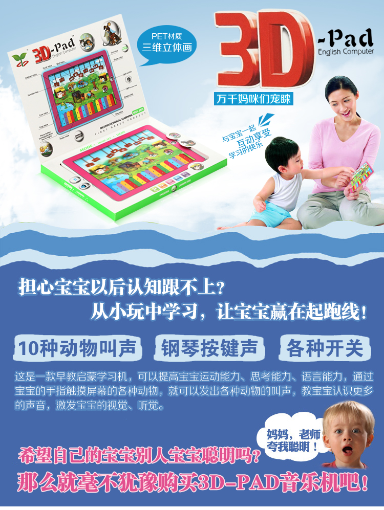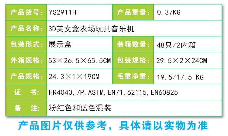 YS2911H 3D英文盒农场玩具音乐机