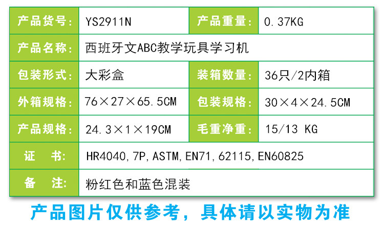 YS2911N 西班牙文ABC教学玩具学习机