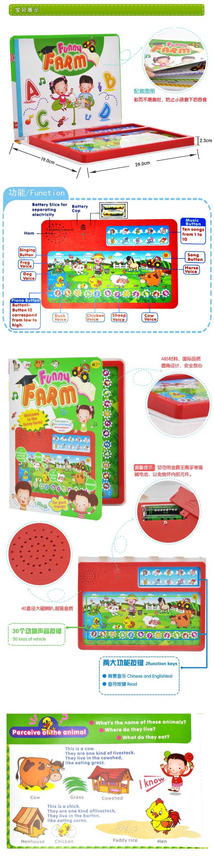 YS2901A 英文快乐农场玩具音乐书