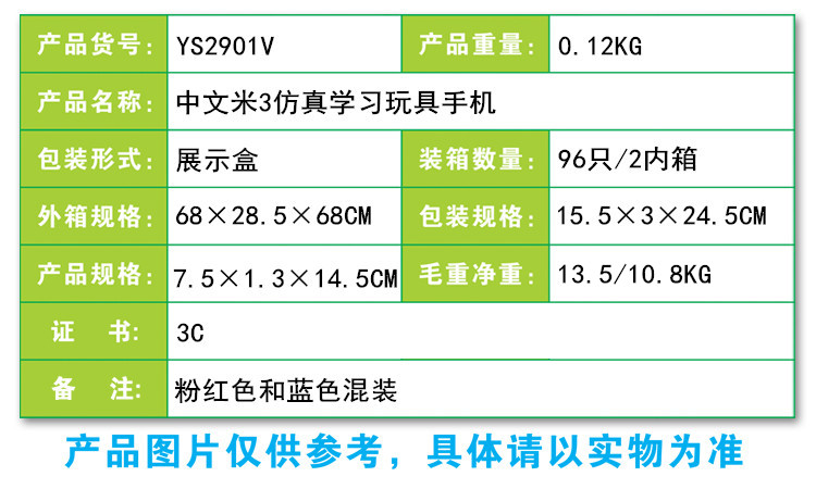 YS2901V 中文米3仿真学习玩具手机
