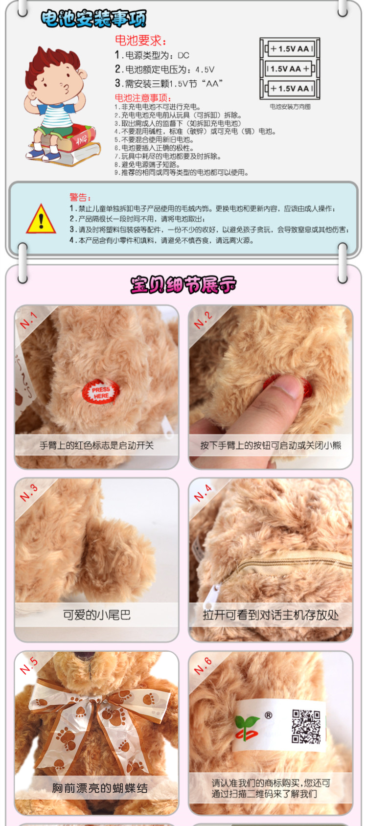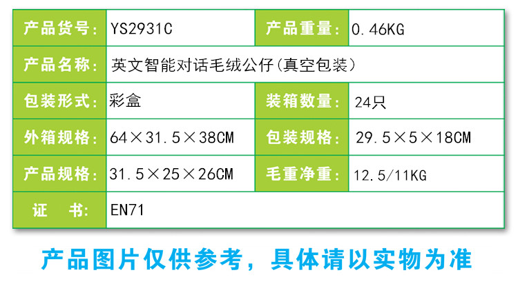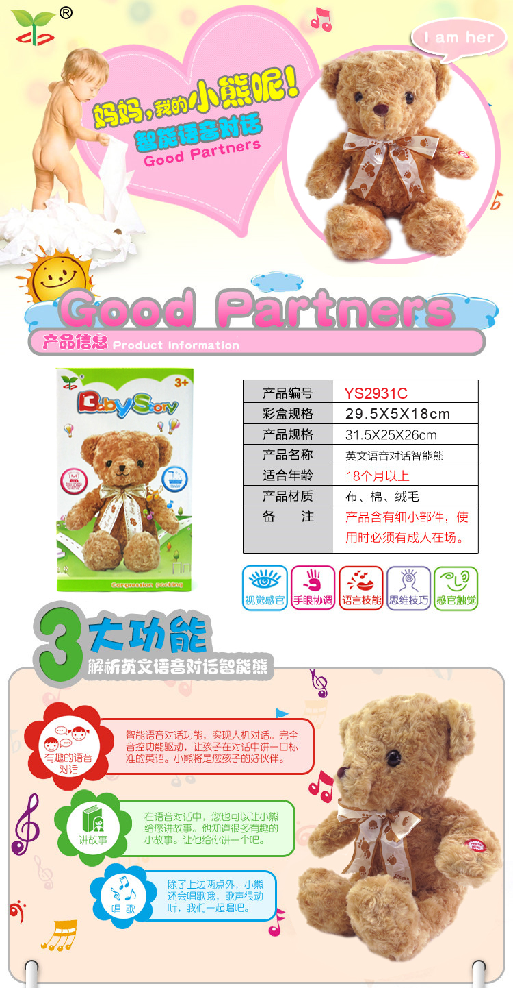 YS2931C 英文智能对话毛绒公仔(真空装)